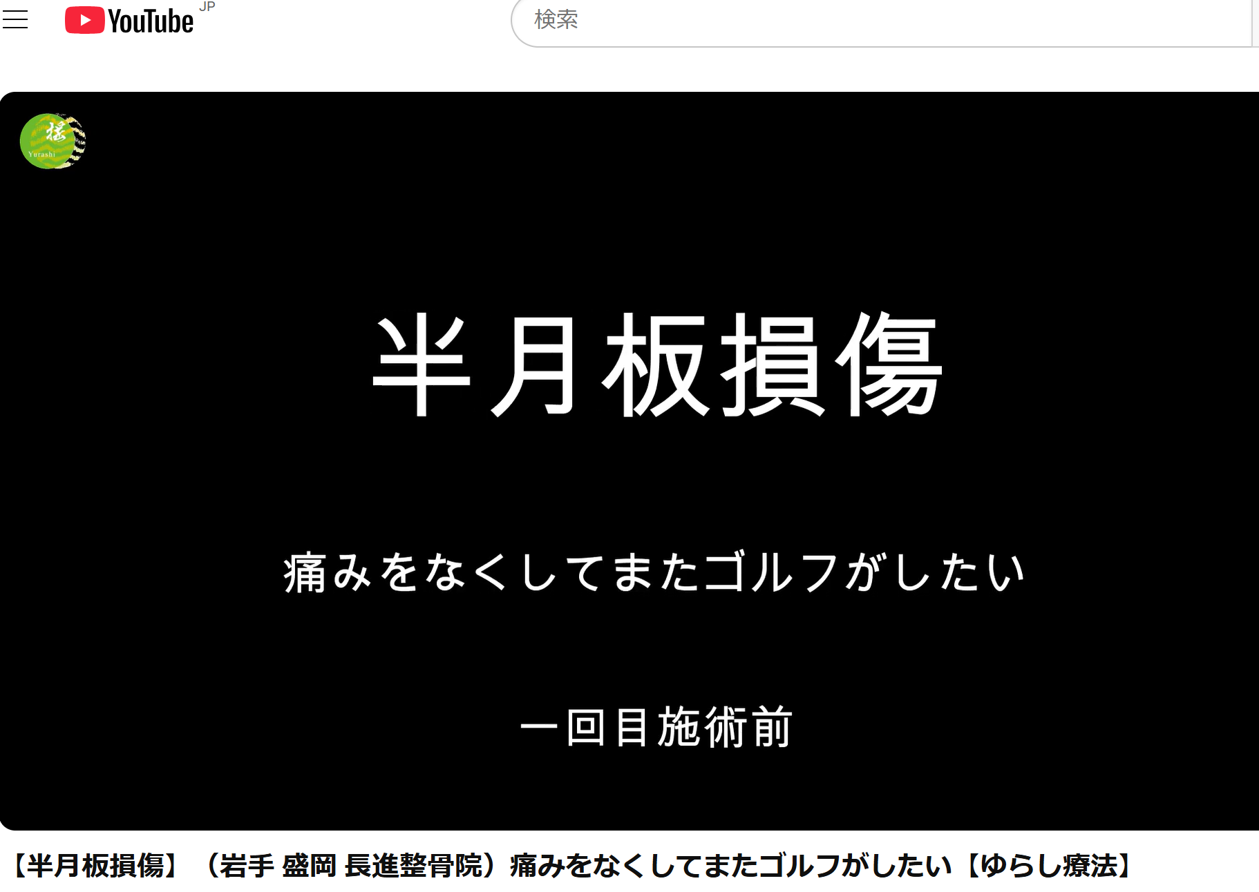 2年ほど前、野球をする前に準備運動をしていた時に右膝に痛みを感じたため整形外科を受診したところ「変形性膝関節症」の診断を受け、腿の筋肉を鍛えるよう指導される。以後痛みを感じながらの生活を送っていたが、今年の7月にゴルフでラウンドした後に右膝に痛みが出て酷い腫れが出たため再度整形外科を受診。MRI検査を受けたところ両膝ともに半月板損傷の診断を受ける。痛み止め、ヒアルロン酸注射、湿布で2か月治療を受けるが良化ないためネット検索してゆらし療法を知っていただき受診される。